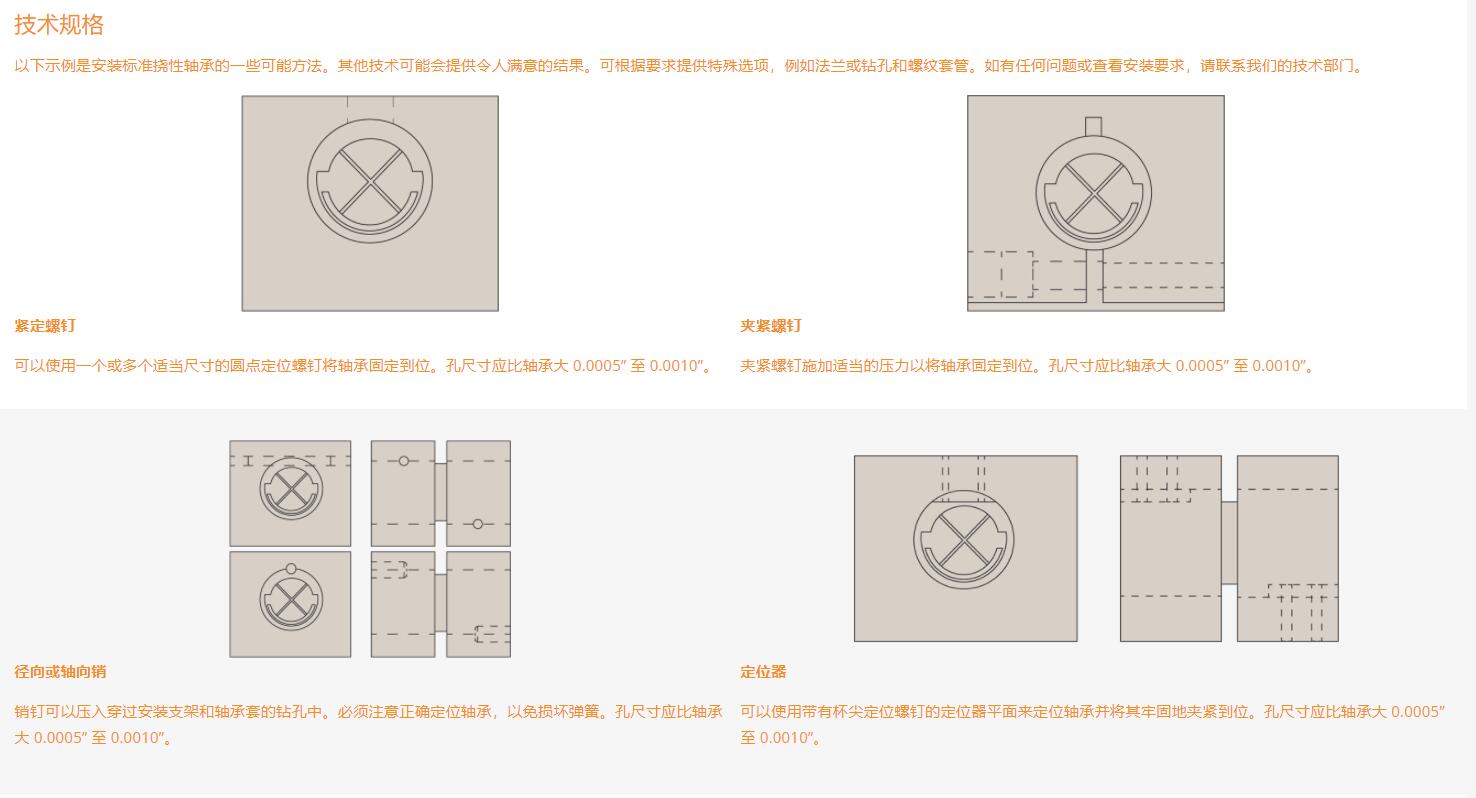 以下示例是安裝標準撓性軸承的一些可能方法。其他技術(shù)可能會提供令人滿意的結(jié)果。可根據(jù)要求提供特殊選項,例如法蘭或鉆孔和螺紋套管。如有任何問題或查看安裝要求,請聯(lián)系我們的技術(shù)部門。